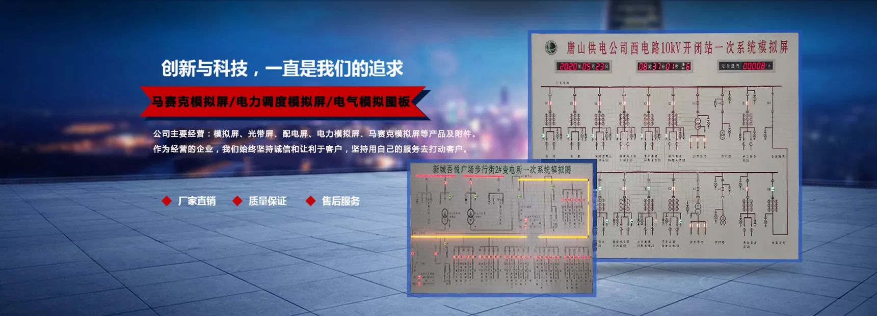 主要产品有智能型分布式调度模拟屏,变电站触摸式灯光模拟图等